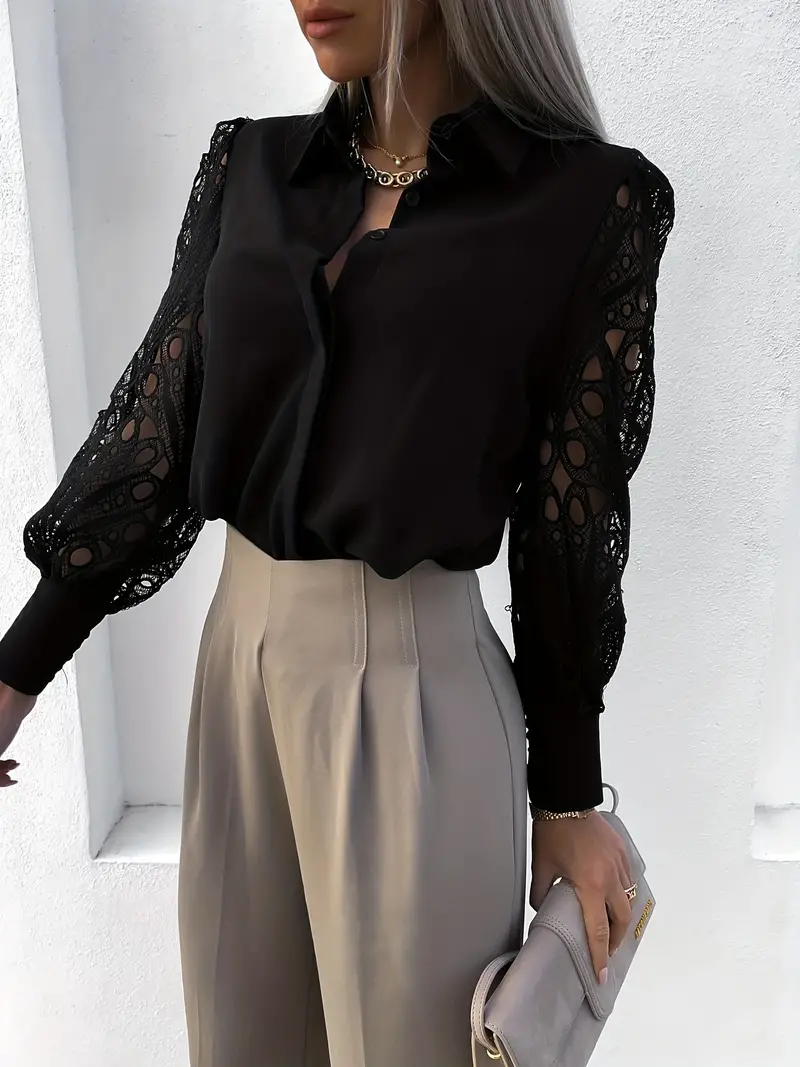 Zanzea Ol Revers Wit Shirts Elegant Woon-werkverkeer Tops 2023 Fashion Casual Blusas Vrouwen Hollow Out Zomer Kant Lange Mouw Blouses